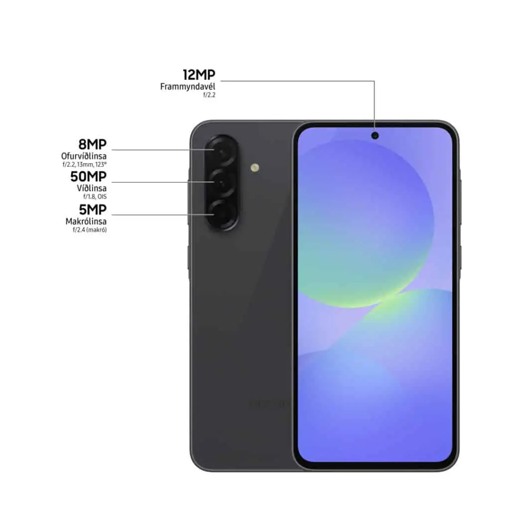 Galaxy A35 5G er góður sími á skynsamlegu verði. Hann er ryk- og vatnsvarinn samkvæmt IP67-vottun og hentar því vel fyrir fyrir íslenskar aðstæður og að sjálfsögðu með íslensku notendaviðmóti. Galaxy A35 5G er einfaldlega skynsamlegur kostur fyrir alla.
