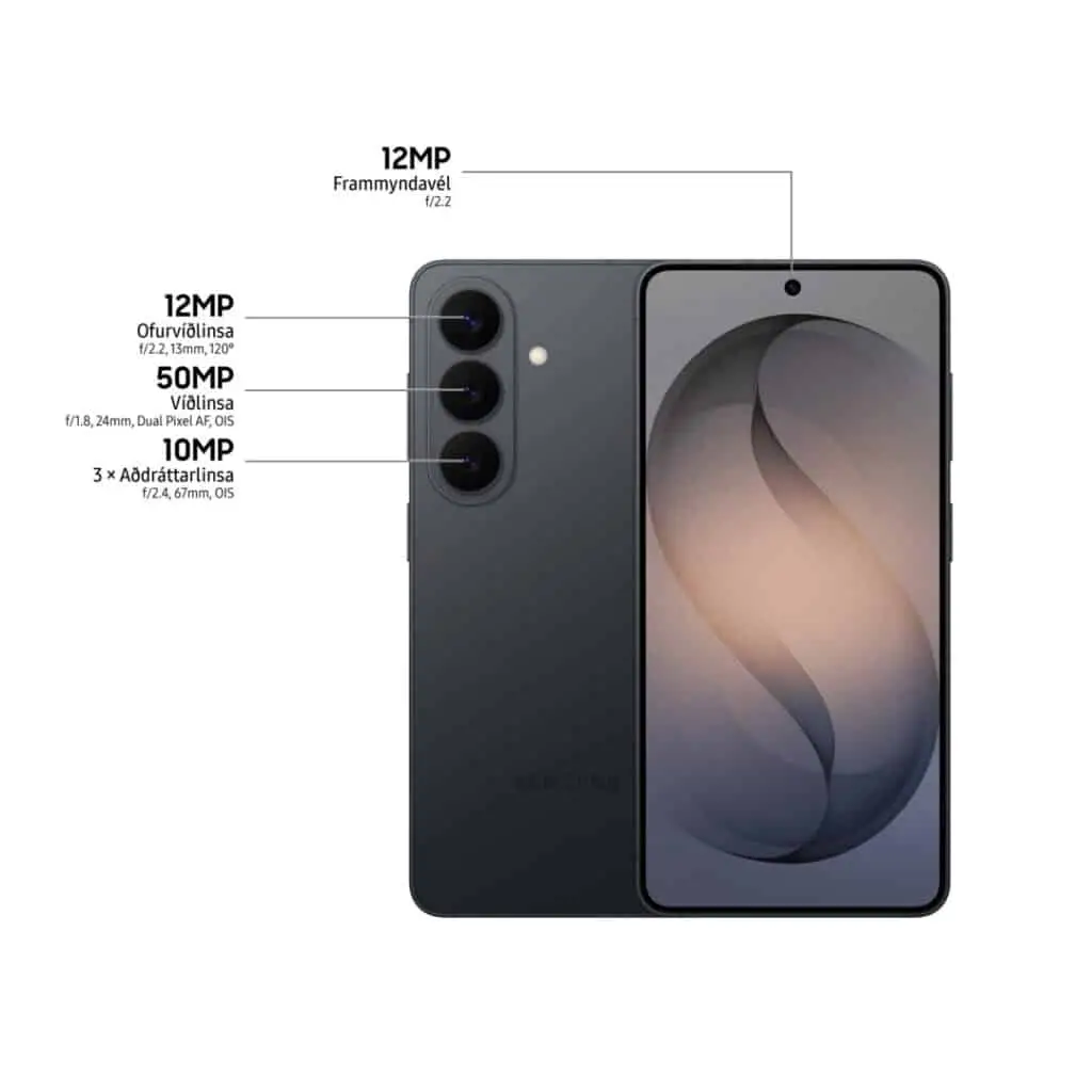 Ný S-lína boðar nýja tíma. Nýr S26 fetar í fótspor vinsælustu síma síðustu ára og mun ef að líkum lætur verða einn söluhæsti síminn á árinu 2026. Nýja S-línan fer enn lengra í nýtingu gervigreindar sem reynst hefur einstaklega notadrjúg til þess að auka notagildi tækjanna m.t.t. skilvirkni og upplýsingaöflunar, enn betri ljósmyndum og myndskeiðum og til almennrar gleði. Í S26 er byggt á vel heppnaðri hönnun og tækni og sem hlotið hefur fjölda verðlauna. Þú tekur betri myndir með Galaxy S26.