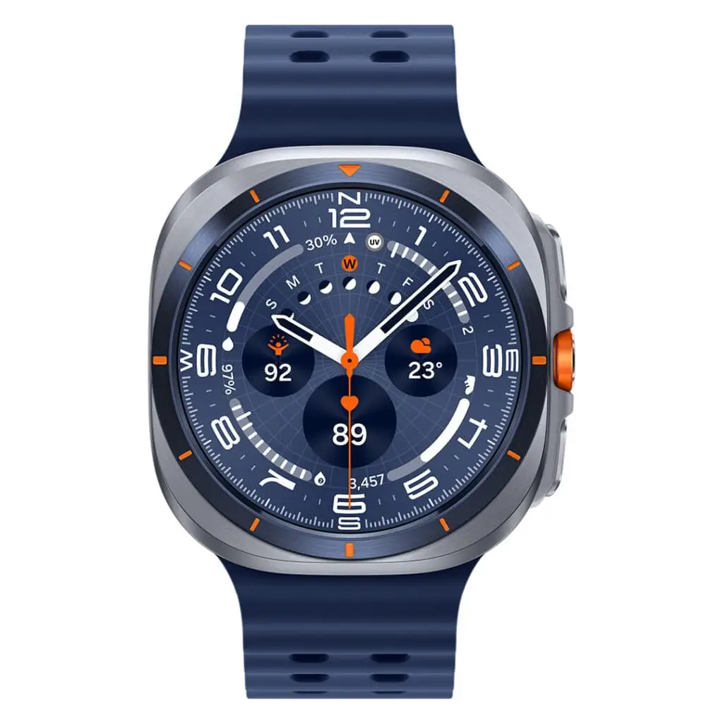 Watch Ultra (2025) býður þig velkomin í heim Galaxy AI. Watch Ultra er tilvalið fyrir íþróttagarpinn, útivistamanneskjuna eða aðra sem vilja öflugt og endingargott úr. Úrið er með títan umgjörð, safír gleri og 10 ATM vatnsvörn og þolir því flestar aðstæður. Frábært til að taka með upp á fjöll, í sjósund, í klifur eða hvaða ævintýri sem er. 2025 útgáfan er uppfærð útgáfa með meira geymsluplássi en fyrri útgáfan.